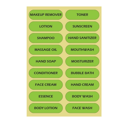 - Αυτοκόλλητες ετικέτες με ονόματα καλλυντικών