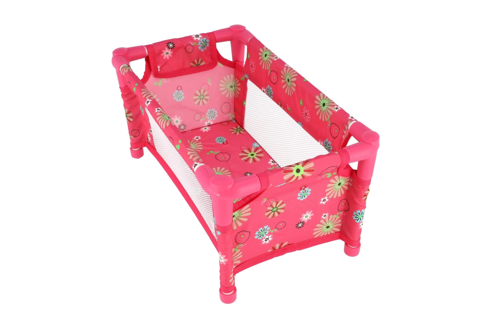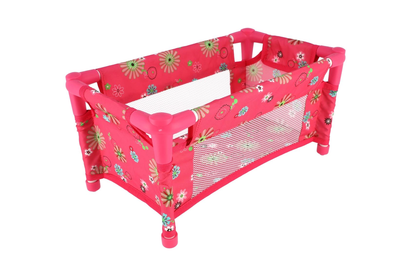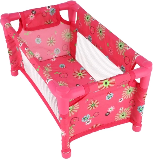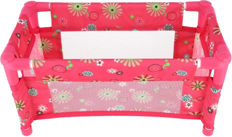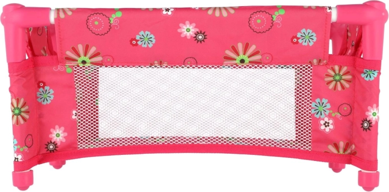 Η στιβαρή αλλά ελαφριά κατασκευή από σωλήνες και υφασμάτινα πάνελ αντέχει το καθημερινό παιχνίδι. Το κρεβατάκι είναι χωρίς στρώμα (χωρίς σκληρό πάτο), γεγονός που το καθιστά ένα ασφαλές και ευέλικτο αξεσουάρ για το παιδικό δωμάτιο. Το χαρούμενο λουλουδάτο μοτίβο σε ροζ τόνους θα χαρίσει χαμόγελο σε κάθε μικρή μαμά.