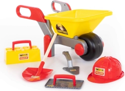 • Περιλαμβάνει καρότσι, κράνος, φτυάρι, κουτάλα και εργαλεία για οικοδομικές εργασίες.