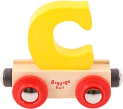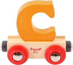 Βαγονάκι με το γράμμα C από τη μάρκα Bigjigs Rail, μέρος της ξύλινης σιδηροδρομικής διαδρομής που χαροποιεί τα παιδιά και αναπτύσσει τις δεξιότητές τους. Ο πολύχρωμος σχεδιασμός και τα ανταλλάξιμα μέρη ενισχύουν τη διασκέδαση και υποστηρίζουν την αλφαβητισμό και τον συντονισμό κατά το παιχνίδι.
