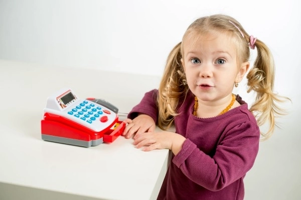 Αυτή η συμπαγής ψηφιακή ταμειακή μηχανή είναι μια εξαιρετική προσθήκη σε κάθε παιδικό κατάστημα. Χάρη στις ρεαλιστικές λειτουργίες, τα παιδιά δοκιμάζουν τη διαχείριση χρημάτων, τη σάρωση προϊόντων και τις βασικές πράξεις. Η ταμειακή είναι κατασκευασμένη από ανθεκτικό πλαστικό, είναι εύκολη στη χρήση και με τα φωτεινά και ηχητικά εφέ της εντυπωσιάζει με την πρώτη ματιά.