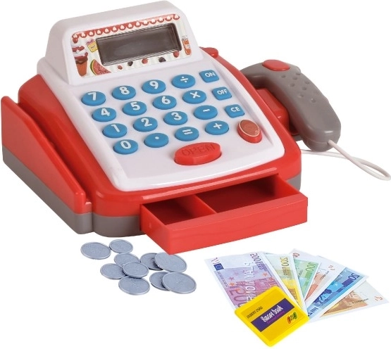 Διασκεδαστική και ρεαλιστική παιδική ταμειακή μηχανή για μικρούς πωλητές. Προσφέρει λειτουργική αριθμομηχανή με οθόνη, συρτάρι χρημάτων που ανοίγει και σαρωτή γραμμωτού κώδικα με φως και ήχο. Ιδανικό παιχνίδι για την ανάπτυξη φαντασίας, αριθμητικής και κοινωνικών δεξιοτήτων.
