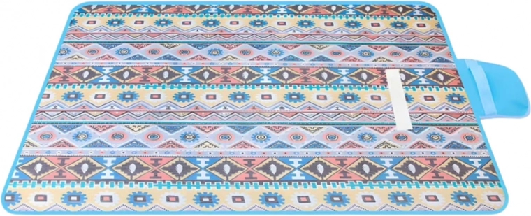 Μετά τη χρήση, διπλώστε την εύκολα σε μια συμπαγή τσάντα μεγέθους 31 × 23 × 5 cm με κλείσιμο σκρατς και πρακτικό χερούλι για μεταφορά. Διατίθεται σε δύο ελκυστικά σχέδια: πράσινα φύλλα ή μπλε γεωμετρικά μοτίβα – ταιριάζουν τέλεια με τη θερινή ατμόσφαιρα στην παραλία ή στο πάρκο.
