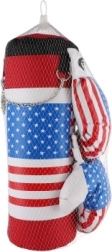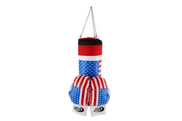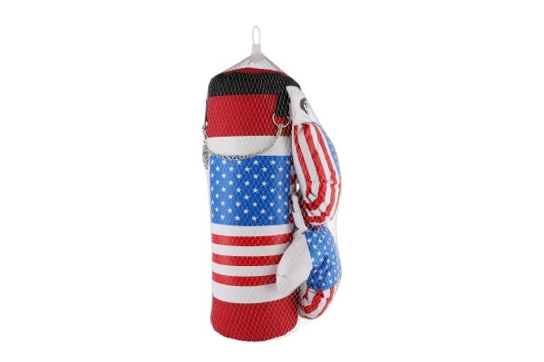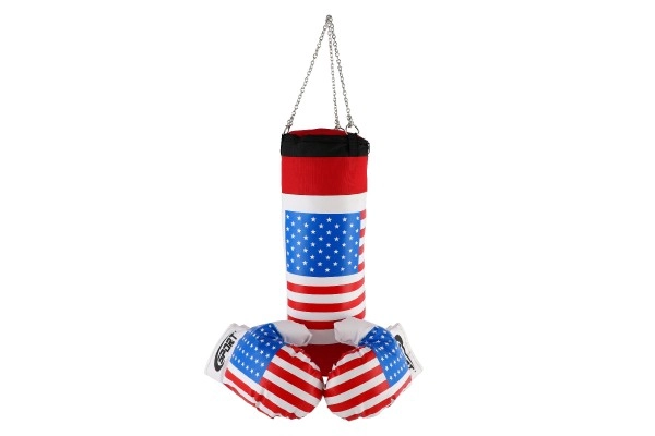 Ο σάκος πυγμαχίας και τα γάντια είναι σχεδιασμένα με θέμα την αμερικανική σημαία, προσφέροντας ένα παιχνιδιάρικο και πολύχρωμο look.
