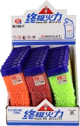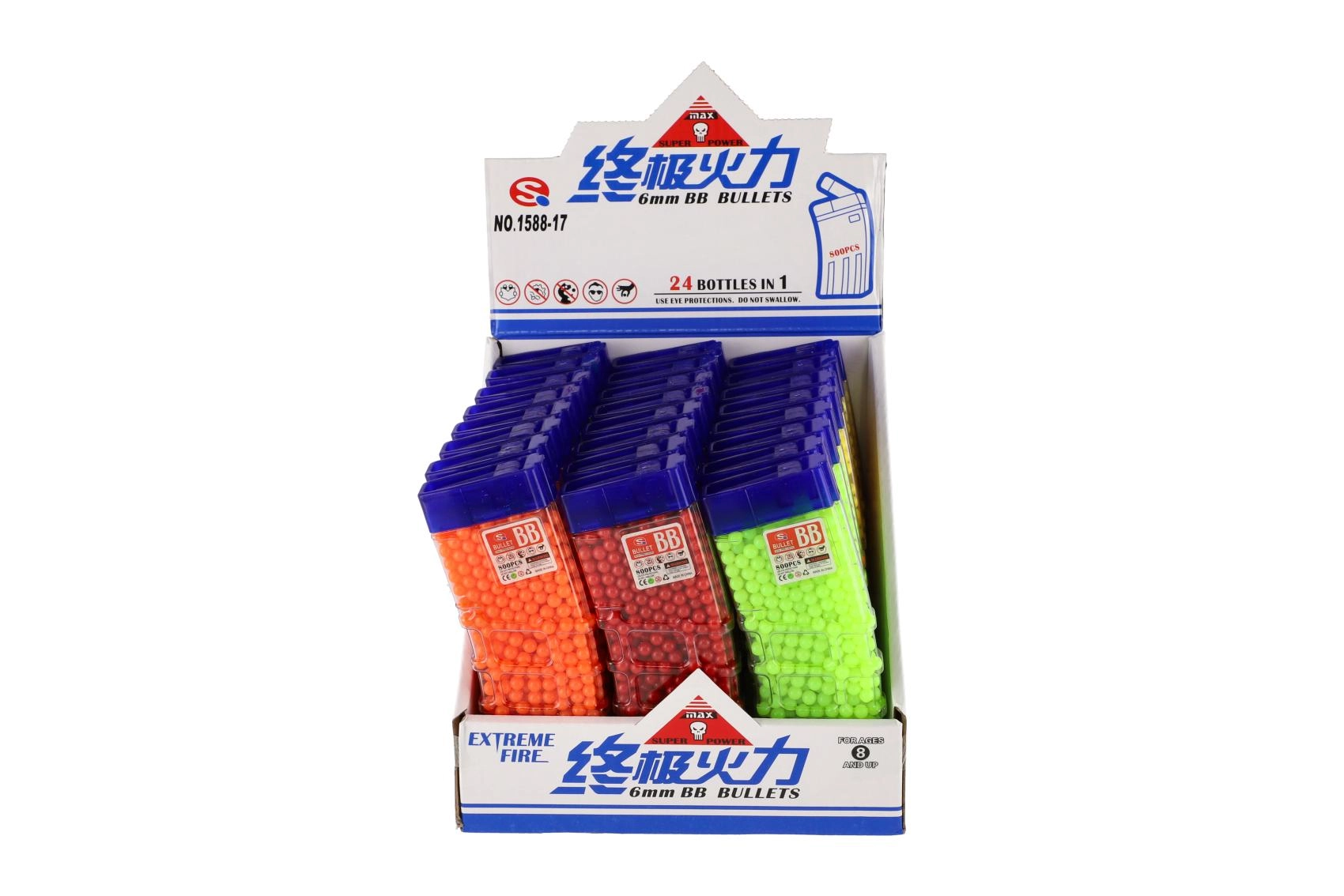 Αυτό το καθολικό σετ μπιλιών 6 mm προσφέρει αρκετά πυρομαχικά για μεγάλης διάρκειας παιχνίδι. Η πολύχρωμη εκδοχή (κίτρινο, μπλε, πράσινο, κόκκινο, πορτοκαλί κ.ά.) αυξάνει τη σαφήνεια και τη διασκέδαση κατά το παιχνίδι. Το διαφανές πλαστικό δοχείο με πρακτικό στόμιο διευκολύνει το γέμισμα των παιδικών παιχνιδιών και ταυτόχρονα προστατεύει το περιεχόμενο από διαρροές.