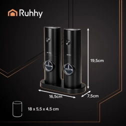 Οι ηλεκτρικοί μύλοι πιπεριού και αλατιού RUHHY είναι το ιδανικό αξεσουάρ για όσους εκτιμούν την ποιότητα και την αισθητική. Η πολυχρηστική χρήση επιτρέπει την αξιοποίησή τους για διάφορους τύπους μπαχαρικών, συμπεριλαμβανομένων των βοτάνων. Την άλεση εξασφαλίζει ο κεραμικός μηχανισμός, που είναι ανθεκτικός και ακριβής χωρίς μεταλλική επίγευση.