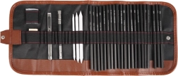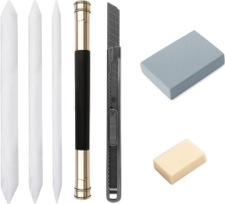 Περιλαμβάνει 27 επιλεγμένα με το χέρι εργαλεία, όπως μολύβια, κάρβουνα και άλλα απαραίτητα για σκιτσάρισμα.