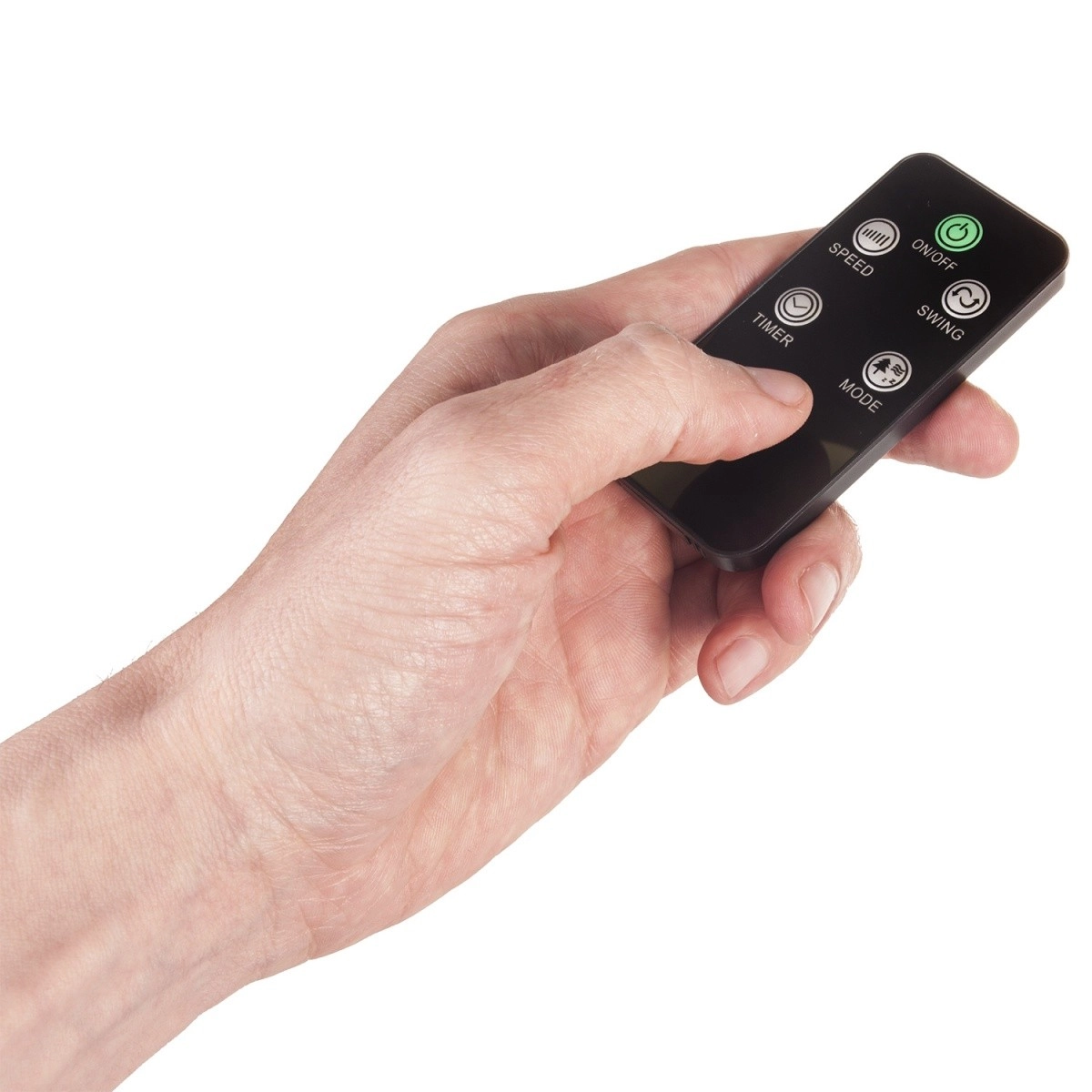 Ο έλεγχος του ανεμιστήρα είναι εφικτός με τηλεχειριστήριο ή μέσω του πίνακα στο επάνω μέρος της συσκευής. Ο ανεμιστήρας προσφέρει τρεις λειτουργίες: Κανονική λειτουργία σύμφωνα με τη ρυθμισμένη ταχύτητα, Φυσική λειτουργία που προσομοιώνει φυσικό αεράκι και Λειτουργία ύπνου για αθόρυβη νυχτερινή λειτουργία.