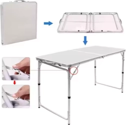 Το πτυσσόμενο τραπέζι κάμπινγκ ξεδιπλώνεται γρήγορα και όταν διπλωθεί γίνεται ένα συμπαγές βαλιτσάκι με άνετη λαβή, που επιτρέπει εύκολη αποθήκευση και μεταφορά. Η μεγάλη επιφάνεια 120 x 60 cm προσφέρει άφθονο χώρο για φαγητό, ποτά ή παιχνίδια. Τα ρυθμιζόμενα στο ύψος πόδια επιτρέπουν προσαρμογή σε διαφορετικές συνθήκες και προτιμήσεις των χρηστών.