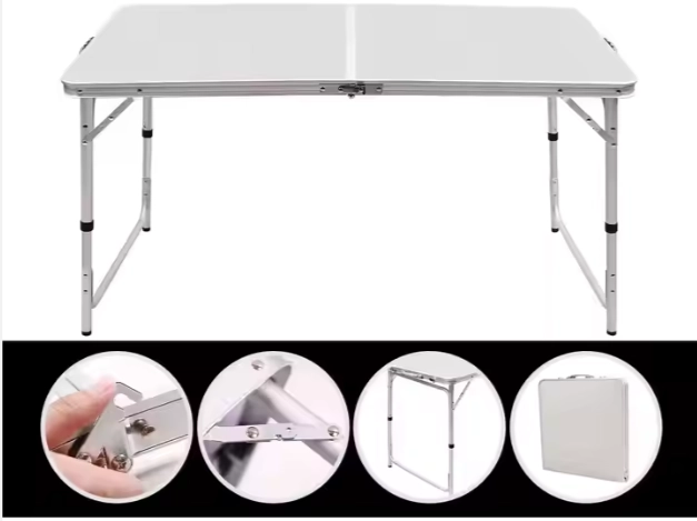 Το τραπέζι είναι κατασκευασμένο από αλουμίνιο και MDF με επικάλυψη PVC, που εξασφαλίζει αντοχή στις καιρικές συνθήκες, εύκολη συντήρηση και μεγάλη διάρκεια ζωής. Κατάλληλο για υπαίθριες εκδηλώσεις, προσφέρει άνεση και σταθερότητα για 4–6 άτομα.