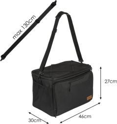 Τα τεχνικά χαρακτηριστικά της τσάντας περιλαμβάνουν διαστάσεις 46 × 27 × 30 cm και μαύρο χρώμα. Η εξωτερική επιφάνεια είναι από ύφασμα Oxford, ενώ η εσωτερική επένδυση αποτελείται από αλουμινόχαρτο σε συνδυασμό με ύφασμα Oxford.