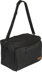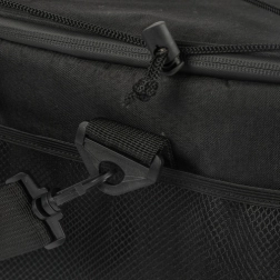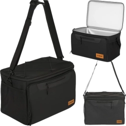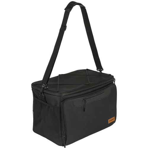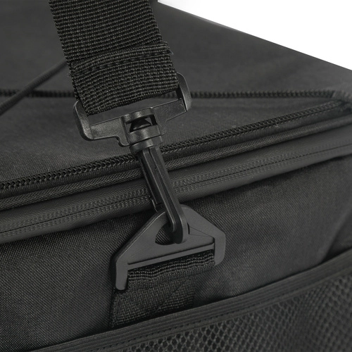Για τη μεταφορά, είναι εξοπλισμένη με άνετο, ρυθμιζόμενο ιμάντα ώμου με προστατευτική επένδυση, που εξασφαλίζει άνεση ακόμη και σε μεγαλύτερο φορτίο. Η τσάντα είναι επίσης αδιάβροχη, πράγμα που σημαίνει ότι μπορείτε να την τοποθετήσετε χωρίς φόβο σε βρεγμένο γρασίδι ή άμμο.