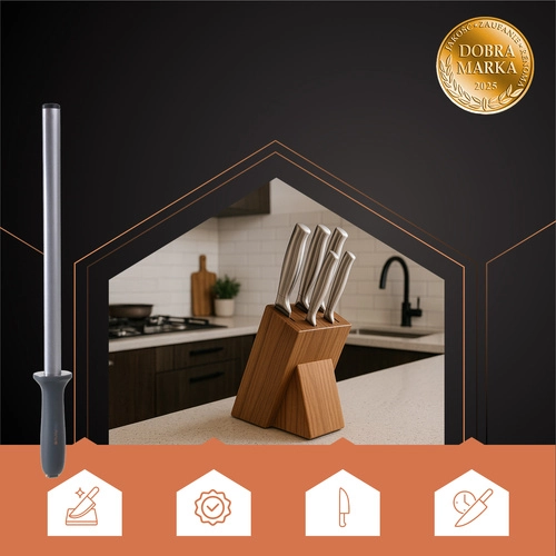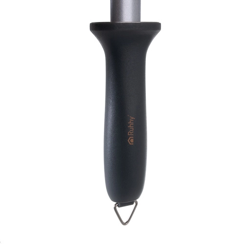 Η διαμαντένια ακονόπετρα RUHHY είναι ανεκτίμητος βοηθός για τακτικό ακόνισμα μαχαιριών, διατηρώντας τα εργαλεία σας σε άψογη κατάσταση. Η εργονομική λαβή και η ατσάλινη ράβδος προσφέρουν άνετη και ανθεκτική χρήση, καθιστώντας την ιδανική για επαγγελματική αλλά και οικιακή κουζίνα.