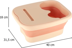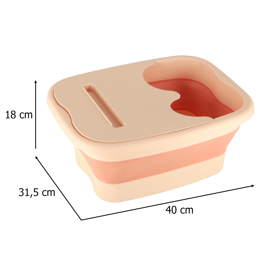 Με χωρητικότητα 13 λίτρων χωρά αρκετό νερό για ένα χαλαρωτικό ποδόλουτρο. Οι προεξοχές στον πάτο της λεκάνης κάνουν απαλό μασάζ στα πέλματα, ενώ η πτυσσόμενη κατασκευή της επιτρέπει εύκολη αποθήκευση.