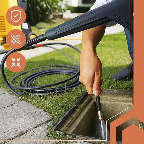 - Εύκαμπτος σωλήνας 15 μέτρων που αφαιρεί εύκολα τα εμπόδια στις σωληνώσεις και τους ρύπους από πλακάκια