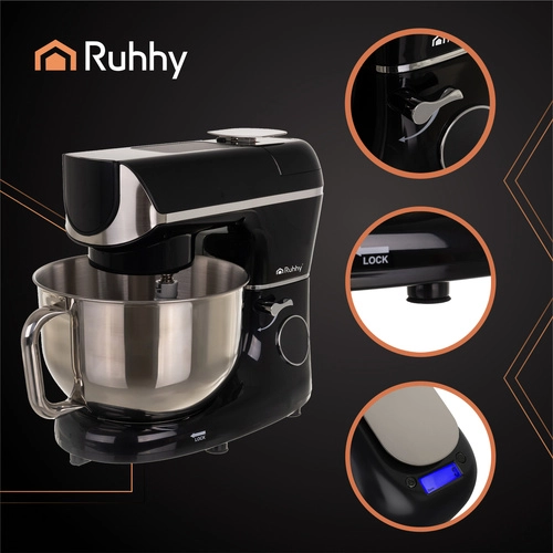 Ανακαλύψτε την έξυπνη κουζινομηχανή RUHHY, που συνδυάζει ανάμιξη, ζύμωμα, χτύπημα, θέρμανση και ζύγιση σε μία συσκευή. Χάρη στον θερμαινόμενο κάδο (25–45 °C) τα ζυμάρια φουσκώνουν γρηγορότερα και ομοιόμορφα, ενώ η ενσωματωμένη ζυγαριά, ο χρονοδιακόπτης και οι 11 ταχύτητες εξασφαλίζουν ακριβή αποτελέσματα χωρίς μαντεψιές. Η μεγάλη ψηφιακή οθόνη, η αθόρυβη λειτουργία (76 dB) και η δυνατότητα πλυσίματος των εξαρτημάτων στο πλυντήριο πιάτων κάνουν αυτή την κουζινομηχανή έναν αξιόπιστο βοηθό για καθημερινό ψήσιμο και μαγείρεμα.