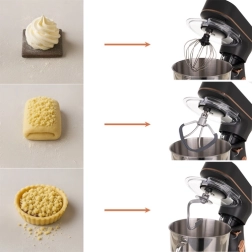 - Πλούσια αξεσουάρ: γάντζος ζύμης, σύρμα, μπαλόνι χτυπήματος, καπάκι, σπάτουλα, διαχωριστής αβγών, σακούλα ζαχαροπλαστικής με 24 μύτες σε οργανωτή.