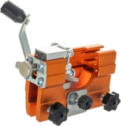 Η εγκατάσταση γίνεται απευθείας στον οδηγό – χωρίς αφαίρεση της αλυσίδας. Η στιβαρή σύσφιξη και η εργονομική μανιβέλα ελαχιστοποιούν τους κραδασμούς και τον κίνδυνο ολίσθησης. Η ανθεκτική κατασκευή από ανοδιωμένο αλουμίνιο με χαλύβδινα συνδετικά υλικά είναι έτοιμη για απαιτητική χρήση τόσο στο συνεργείο όσο και στο δάσος.