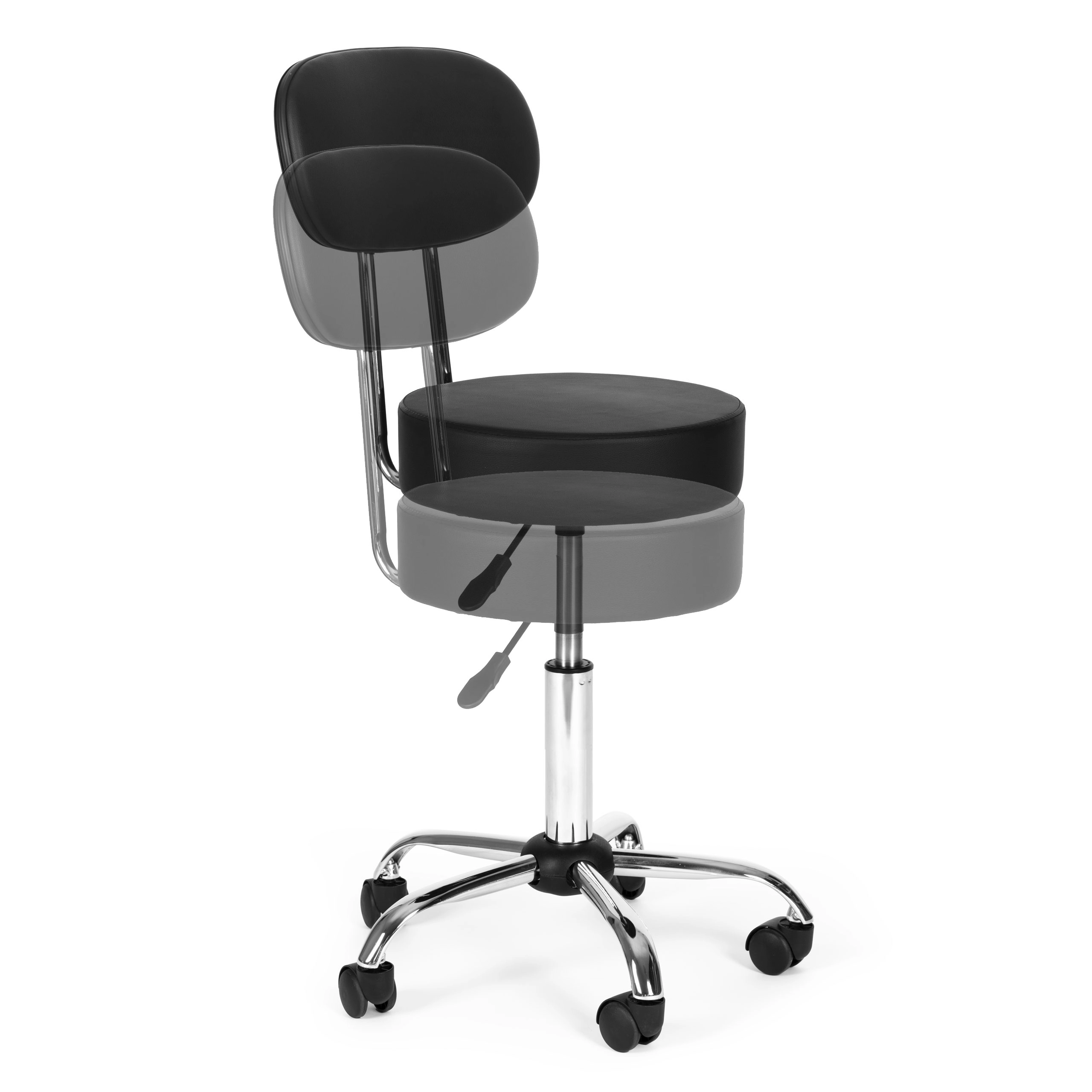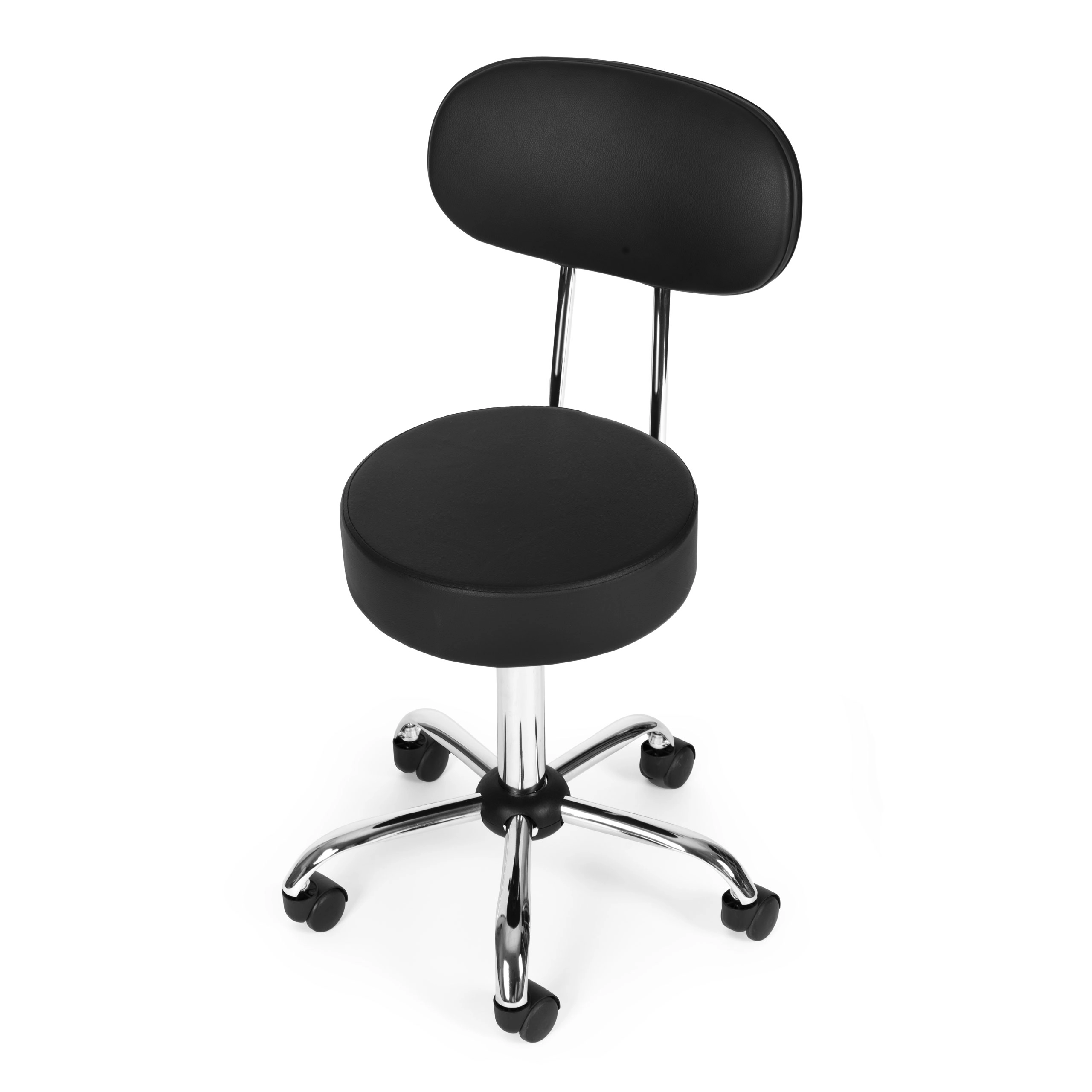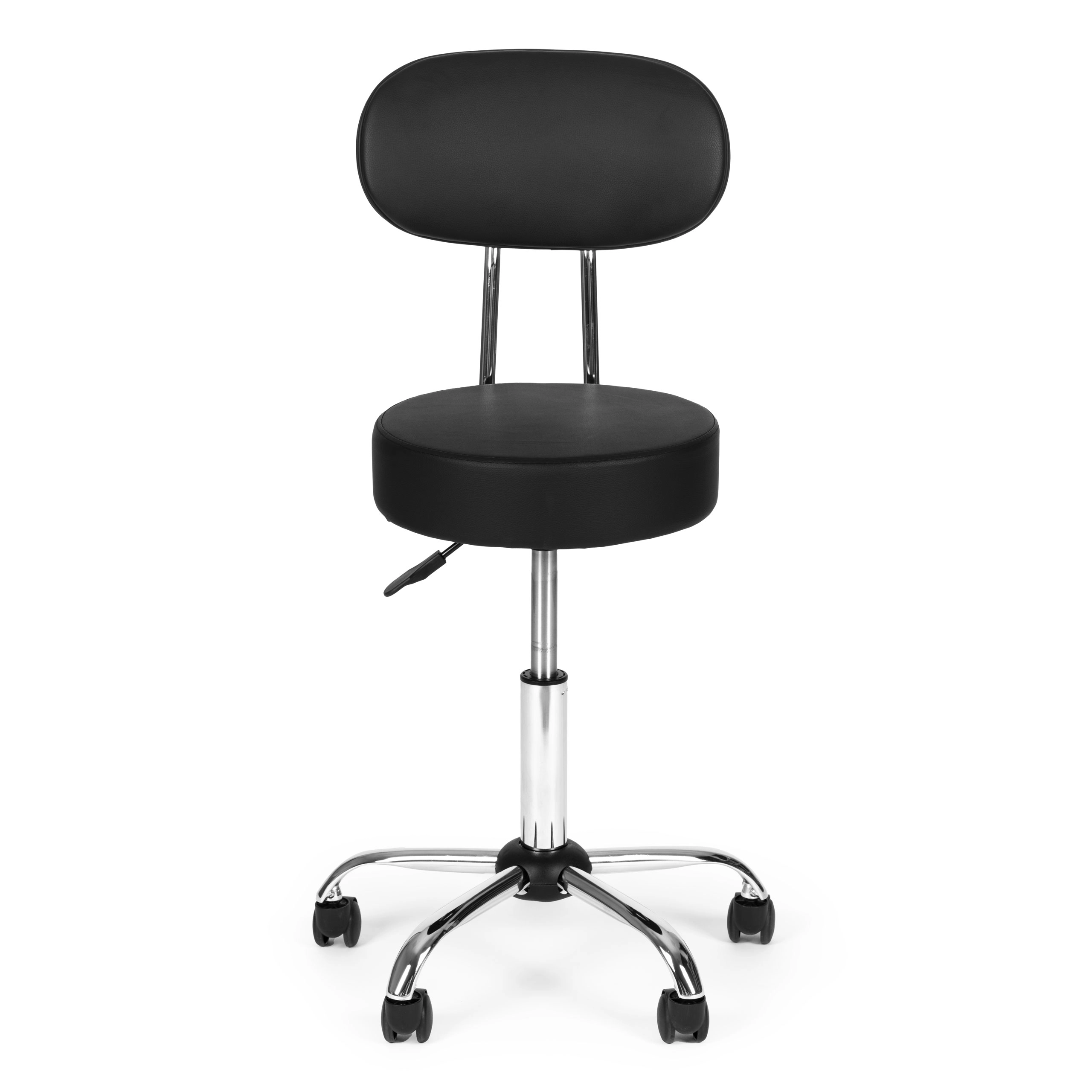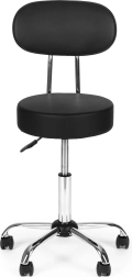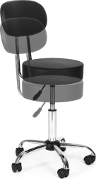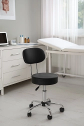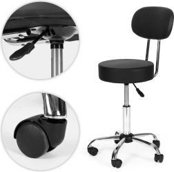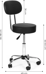 Επαγγελματικό περιστρεφόμενο σκαμπό με πλάτη για ινστιτούτα ομορφιάς, κομμωτήρια και ιατρικούς χώρους. Προσφέρει ομαλή ρύθμιση ύψους, κάθισμα με περιστροφή 360°, σταθερή μεταλλική κατασκευή και ανθεκτική ταπετσαρία από δέρμα PVC. Χάρη στον μαλακό αφρό 8 cm, τη βάση πέντε ακτίνων με ροδάκια και τη μέγιστη αντοχή 136 kg εξασφαλίζει άνεση, κινητικότητα και μεγάλη διάρκεια ζωής.