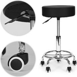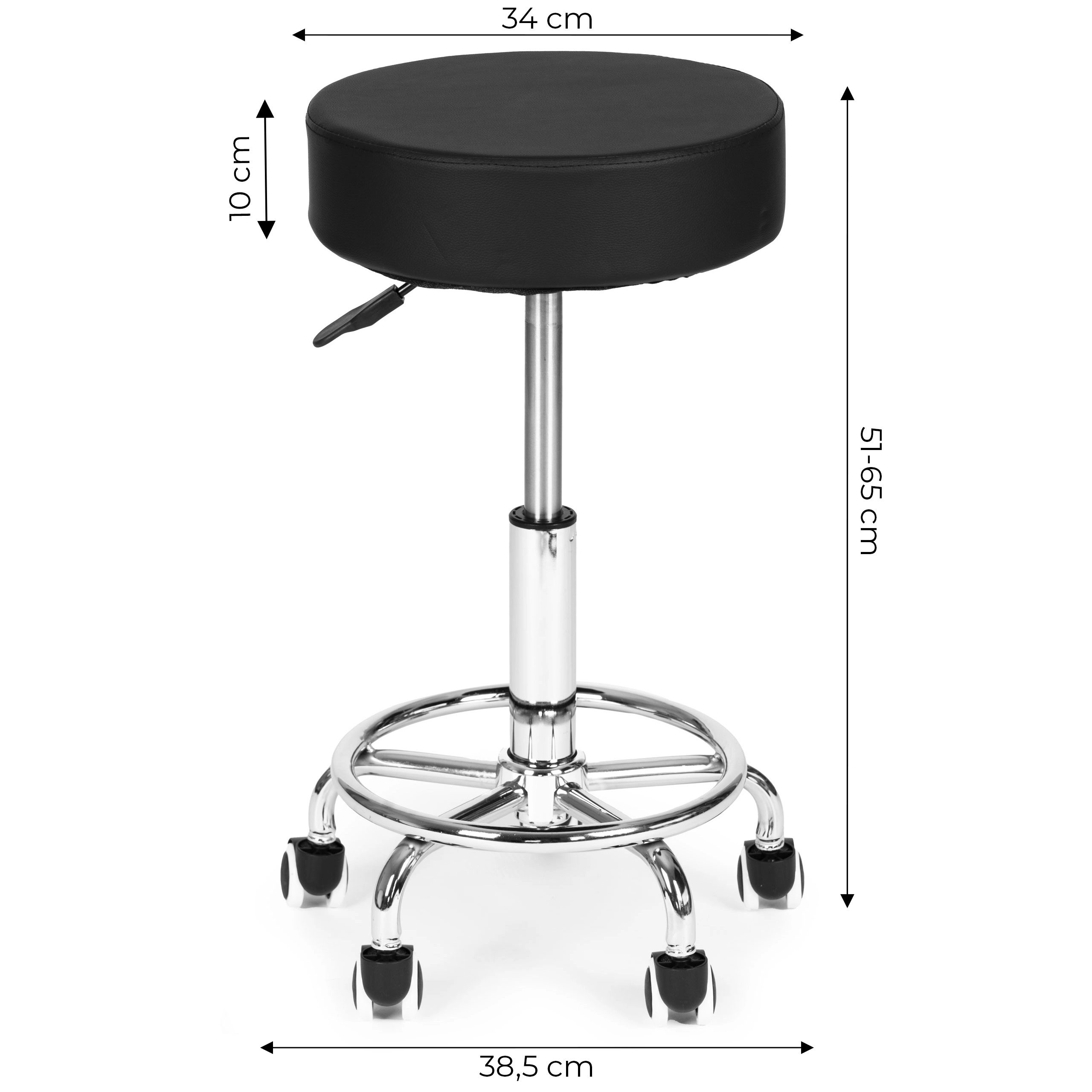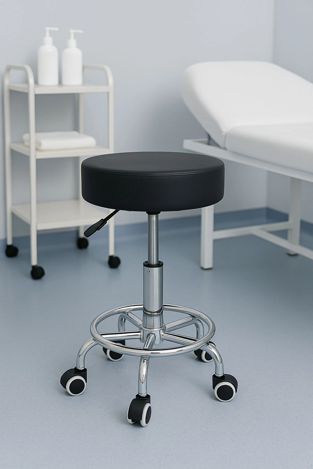 Εργονομικό κάθισμα για επαγγελματίες – το σκαμπό εξυπηρετεί άριστα σε χώρους αισθητικής και κομμωτηρίων, ιατρεία, χώρους μασάζ και στούντιο τατουάζ. Ο ομαλός πνευματικός κύλινδρος επιτρέπει γρήγορη προσαρμογή ύψους, ενώ το περιστρεφόμενο κάθισμα 360° διευκολύνει την εργασία χωρίς περιττά σηκώματα.