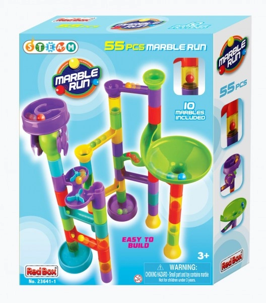 Αυτή η πλαστική πίστα με μπίλιες, με 55 κομμάτια, επιτρέπει στα παιδιά να κατασκευάζουν ποικίλες διαδρομές και να δοκιμάζουν ποια μπίλια θα είναι η πιο γρήγορη. Χάρη στα διαφορετικά εμπόδια και τα περιστρεφόμενα στοιχεία, κάθε διαδρομή είναι διαφορετική και γεμάτη αγωνία. Το σετ καλλιεργεί την δημιουργικότητα, την υπομονή και τον συντονισμό χεριού–ματιού.