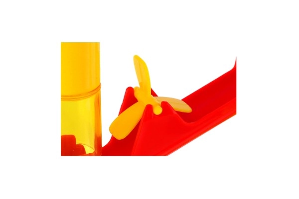 Τα επιμέρους εξαρτήματα έχουν χαρούμενα χρώματα, κουμπώνουν εύκολα μεταξύ τους και είναι σχεδιασμένα για ασφαλές παιχνίδι. Τα παιδιά μπορούν να πειραματιστούν με το ύψος, την κλίση και τη σειρά των εμποδίων και έτσι να κατανοήσουν βασικές αρχές της ταχύτητας και της βαρυτικής κίνησης.