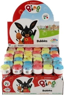 Οι μπουρμπουλήθρες BING 60 ml είναι ιδανική μικρή επιλογή για καθημερινό παιχνίδι, γενέθλια και παιδικά πάρτι. Με τους αγαπημένους χαρακτήρες της σειράς BING θα χαροποιήσουν κάθε μικρό θαυμαστή. Το απλό φύσημα των μπουρμπουλήθρων καλλιεργεί τον συντονισμό, τη δημιουργικότητα και το παιχνίδι στον καθαρό αέρα.