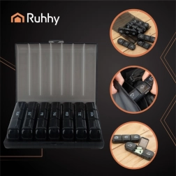 Κρατήστε τα φάρμακα και τα συμπληρώματά σας άψογα οργανωμένα. Ο οργανωτής RUHHY προσφέρει επτά ξεχωριστά ημερήσια κουτιά, το καθένα με τρεις θαλάμους για πρωί, μεσημέρι και βράδυ. Η ευκρινής σήμανση και το κούμπωμα τύπου click ελαχιστοποιούν τα λάθη και διασφαλίζουν ότι οι δόσεις είναι πάντα διαθέσιμες.