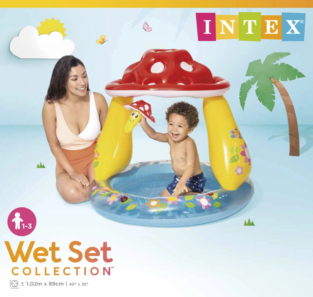 Προσφέρετε στα παιδιά σας διασκεδαστικό και ασφαλές παιχνίδι με τη φουσκωτή παιδική πισίνα, σχεδιασμένη με σκεπή σε σχήμα μανιταριού για προστασία από τον ήλιο.