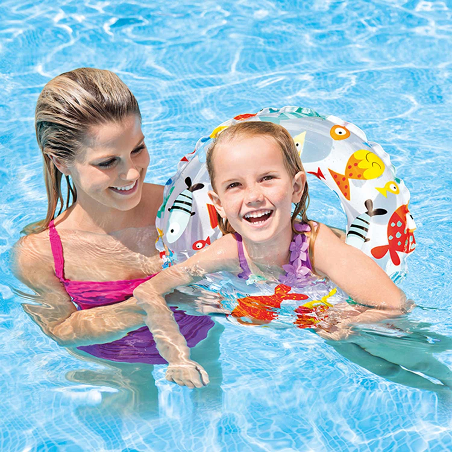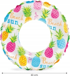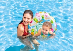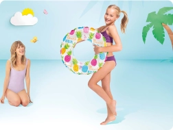 Ελαφρύ και ανθεκτικό φουσκωτό σωσίβιο INTEX με διάμετρο 61 cm, ιδανικό για παιχνίδι στο νερό και για τα πρώτα βήματα στην εκμάθηση κολύμβησης. Κατασκευασμένο από ανθεκτικό PVC (0,18 mm), με χρωματιστά μοτίβα και άνετο κράτημα. Το σχέδιο επιλέγεται τυχαία.