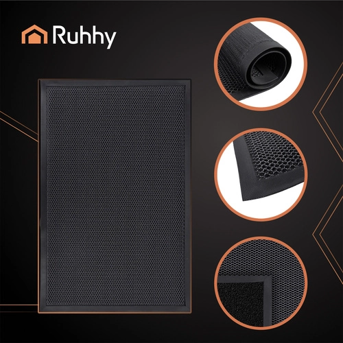 Το ποδόμακτρο RUHHY είναι μια αξιόπιστη λύση για εισόδους σπιτιού, διαμερίσματος, γραφείου και καταστήματος. Η σκληρή και ανθεκτική κατασκευή του με 3D πλέγμα αποξέει αποτελεσματικά λάσπη, άμμο και νερό από τα παπούτσια, ώστε ο εσωτερικός χώρος να παραμένει καθαρός για περισσότερο. Οι υπερυψωμένες άκρες βοηθούν να συγκρατούνται οι ρύποι και η υγρασία πάνω στο ποδόμακτρο και αποτρέπουν το λύγισμα των γωνιών.