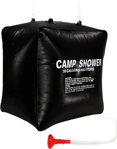 Πρακτικό ηλιακό ντους με χωρητικότητα 40 λίτρων εξασφαλίζει ζεστό νερό σε κάμπινγκ, εκδρομές και στο εξοχικό. Το ανθεκτικό υλικό ζεσταίνει το νερό με τον ήλιο έως 40 °C, το ντους είναι συμπαγές, ελαφρύ και κρεμιέται εύκολα χάρη στο ανθεκτικό σκοινί. Ιδανικό για προσωπική υγιεινή και πλύσιμο σκευών όπου δεν υπάρχει τρεχούμενο νερό.