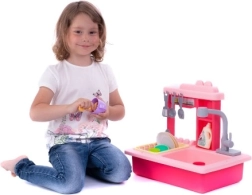 Απολαύστε διασκεδαστικό πλύσιμο πιάτων με αυτόν τον παιδικό νεροχύτη σε ροζ χρώμα, που περιλαμβάνει λειτουργική βρύση, δεξαμενή νερού και αποσπώμενο στράγγιστρο.