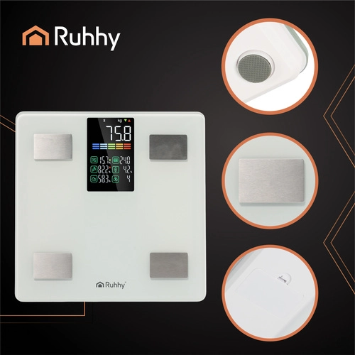 Η έξυπνη αναλυτική ζυγαριά RUHHY με ακρίβεια BIA μετρά έως 226 kg και στην εφαρμογή Feelfit εμφανίζει έως 13 δείκτες σώματος. Θα δείτε με σαφήνεια στο LCD και στο τηλέφωνο τις τιμές: βάρος, BMI, σωματικό λίπος, νερό, μυς, οστά, σπλαχνικό λίπος και άλλα. Αυτόματη ενεργοποίηση/απενεργοποίηση, ανθεκτικό σκληρυμένο γυαλί και 4 ηλεκτρόδια για αξιόπιστη ανάλυση – ιδανική για οικιακό έλεγχο υγείας.