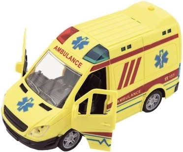 Το ασθενοφόρο είναι εξοπλισμένο με φωτεινά και ηχητικά εφέ που κάνουν το παιχνίδι ακόμα πιο ρεαλιστικό. Αυτό το μοντέλο λειτουργεί με μηχανισμό αδράνειας, εξασφαλίζοντας ομαλή κίνηση σε επίπεδη επιφάνεια.
