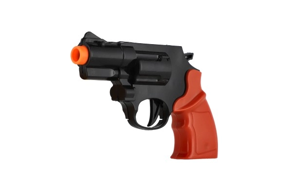 Πλαστικό πιστόλι με πορτοκαλί άκρο, ιδανικό για παιδικά χέρια – κρατιέται και χειρίζεται εύκολα και χωράει άνετα στο σακίδιο.