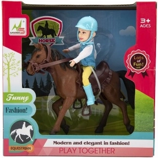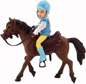 Όλοι οι μικροί φίλοι των αλόγων θα χαρούν με τον ζοκέι και το αλογάκι με χαλινάρι και σέλα. Ο ζοκέι πρέπει να έχει ιππικό ντύσιμο και κράνος. Η χαίτη και η ουρά του αλόγου δεν είναι για χτένισμα. Κατασκευασμένο από ποιοτικά και ανθεκτικά υλικά. Διαστάσεις συσκευασίας 23 x 23 x 9,5 εκ. Κατάλληλο για παιδιά από 3 ετών.