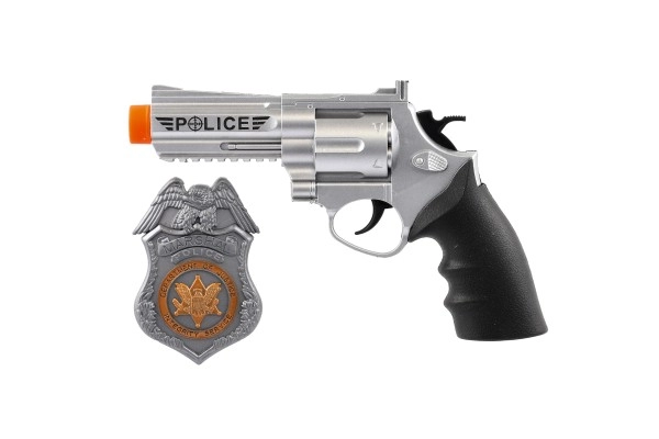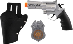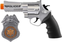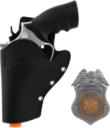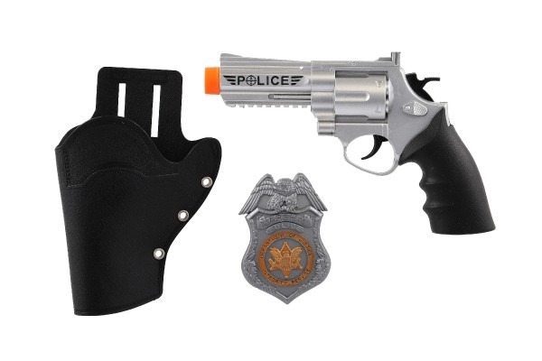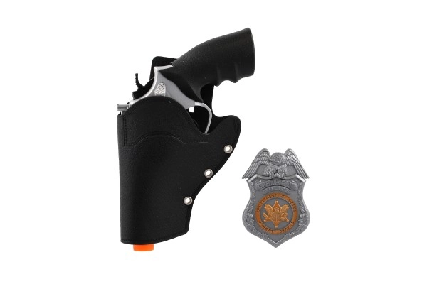 Αστυνομικό σετ για παιδιά που περιλαμβάνει ρεαλιστικό πλαστικό περίστροφο, παραπέμποντας στον κόσμο της τήρησης του νόμου και της τάξης, συμπληρωμένο με σήμα και θήκη για μια ολοκληρωμένη εμπειρία παιχνιδιού.
