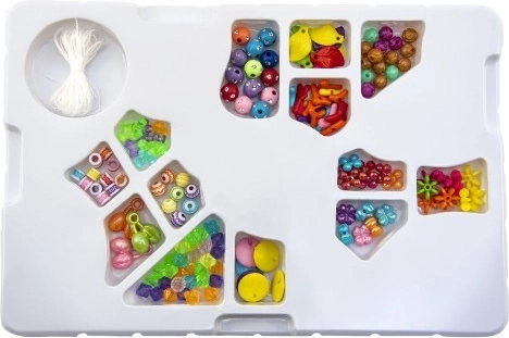 Το σετ περιλαμβάνει μια ευρεία γκάμα πολύχρωμων χαντρών που επιτρέπουν απεριόριστη δημιουργικότητα και ποικιλία κατά την κατασκευή κοσμημάτων.
