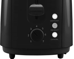 Η πρακτική λειτουργία απόψυξης παρατείνει τον κύκλο ώστε το κατεψυγμένο ψωμί πρώτα να αποψυχθεί απαλά και στη συνέχεια να ψηθεί ομοιόμορφα. Το κουμπί Stop διακόπτει αμέσως τη διαδικασία χωρίς να χρειάζεται να βγάλετε το φις από την πρίζα και η αυτόματη απενεργοποίηση διασφαλίζει ασφαλή λειτουργία μετά την ολοκλήρωση του ψησίματος.