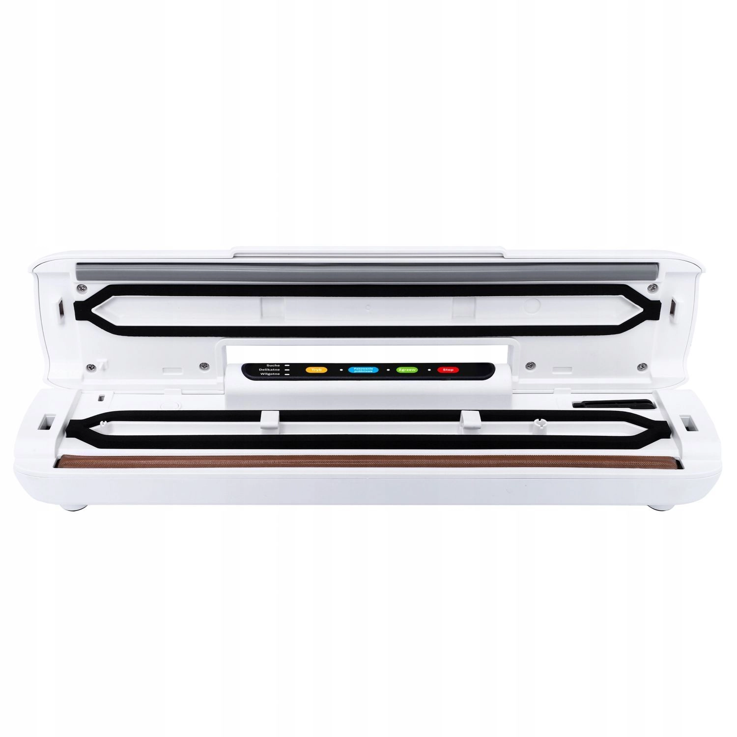 Χάρη στις λειτουργίες Ήπια, Ξηρά και Υγρά προσαρμόζετε εύκολα την απόδοση στον τύπο τροφίμων. Ο χειρισμός One Touch απλοποιεί τη χρήση – με ένα άγγιγμα ανοίγετε ή κλείνετε τη συσκευή. Η ενσωματωμένη θήκη με κόφτη επιτρέπει ακριβές και καθαρό κόψιμο της μεμβράνης, ώστε η συσκευασία να είναι γρήγορη και τακτοποιημένη.