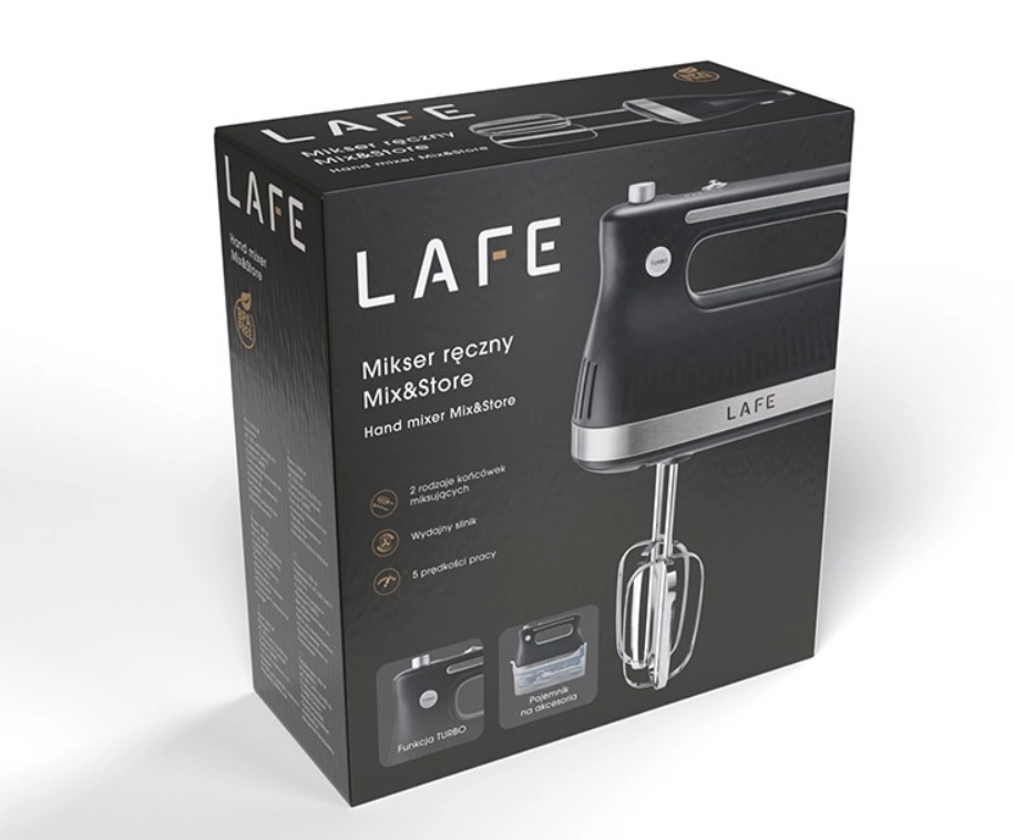 Ανακαλύψτε την ευελιξία και την άνεση με το χειροκίνητο μίξερ LAFE Mix&Store. Χάρη στον ισχυρό κινητήρα και στις πέντε ομαλά ρυθμιζόμενες ταχύτητες, θα χτυπήσετε εύκολα κρέμα, θα ετοιμάσετε κρέμες, ζύμες και αφράτους αφρούς. Η λειτουργία Turbo προσφέρει άμεση επιπλέον ισχύ για πιο πυκνά μείγματα.