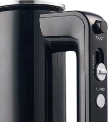 Χάρη στις 5 βαθμίδες ταχύτητας προσαρμόζετε εύκολα τον ρυθμό στα υλικά που επεξεργάζεστε. Τα ανοξείδωτα σύρματα χτυπούν ιδανικά ασπράδια ή κρέμα, ενώ οι γάντζοι ζύμης διευκολύνουν την προετοιμασία προζυμένιων και βουτύρινων ζυμών. Η εύκολη αλλαγή εξαρτημάτων με το κουμπί Eject και ο διαισθητικός χειρισμός εξοικονομούν χρόνο και κόπο.