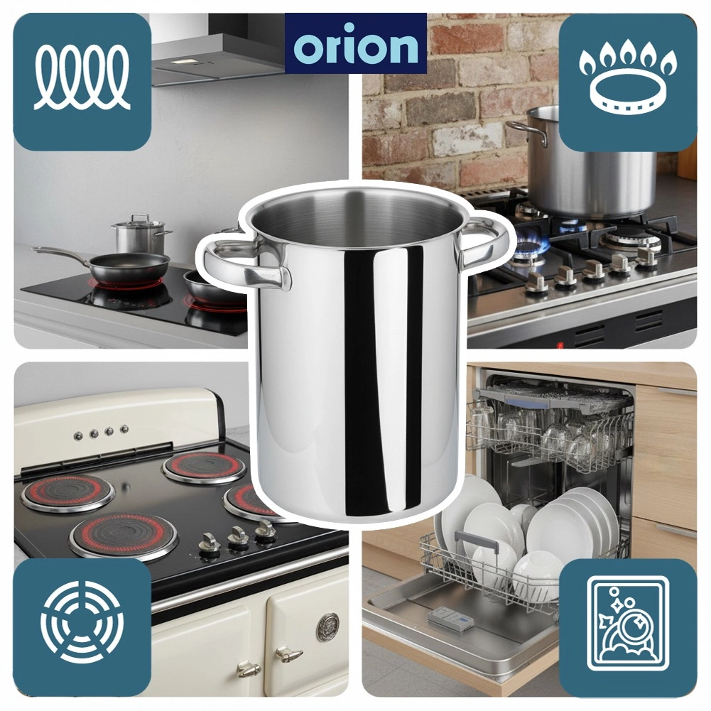 Πρακτική ψηλή κατσαρόλα από ποιοτικό ανοξείδωτο χάλυβα 304, σχεδιασμένη για άνετο μαγείρεμα σπαραγγιών, σπαγγέτι και άλλων μακριών τροφίμων. Η κομψή γυαλιστερή εξωτερική επιφάνεια και το ματ εσωτερικό εξασφαλίζουν επαγγελματική εμφάνιση και εύκολο καθάρισμα. Χάρη στις στιβαρές πριτσινωμένες χειρολαβές, ο χειρισμός είναι ασφαλής ακόμη και όταν είναι γεμάτη.
