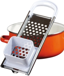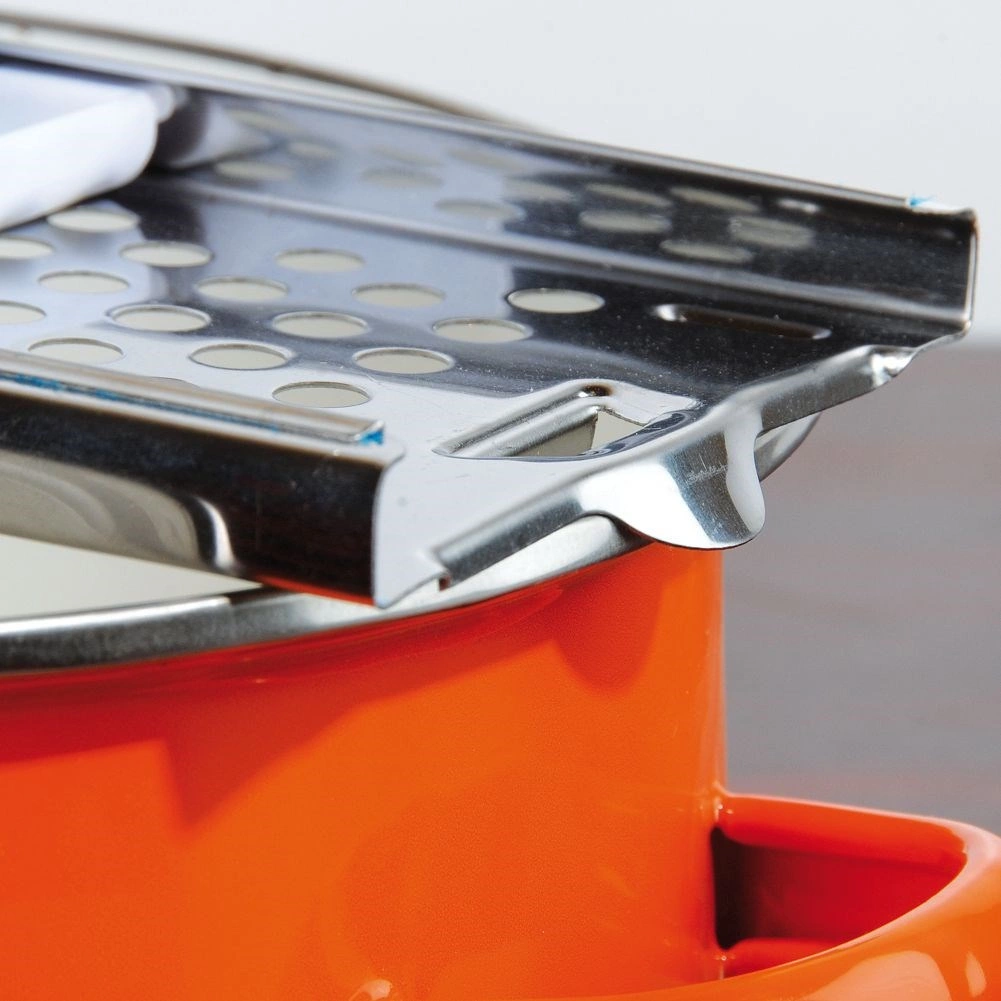 Το πρακτικό στοπ και η λαβή επιτρέπουν άνετο τρίψιμο και πάτημα απευθείας πάνω από την κατσαρόλα χωρίς ακαταστασία.