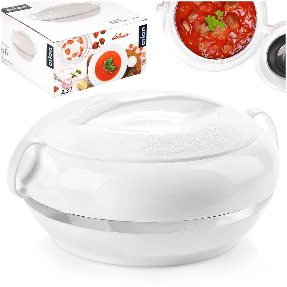 Το κομψό θερμοδοχείο ORION Deluxe είναι εξαιρετικός βοηθός για το καθημερινό τραπέζι και τα σαββατοκύριακα με καλεσμένους. Διατηρεί τη θερμοκρασία έτοιμων φαγητών, σούπας ή γαρνιτούρων έως και δύο ώρες και το καλοκαίρι είναι κατάλληλο και για διατήρηση παγωτού ή επιδορπίων δροσερών. Η εσωτερική λεία επιφάνεια από ανοξείδωτο ατσάλι καθαρίζεται εύκολα και είναι υγιεινή.