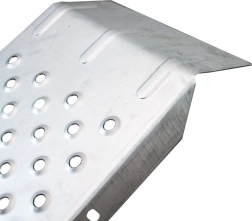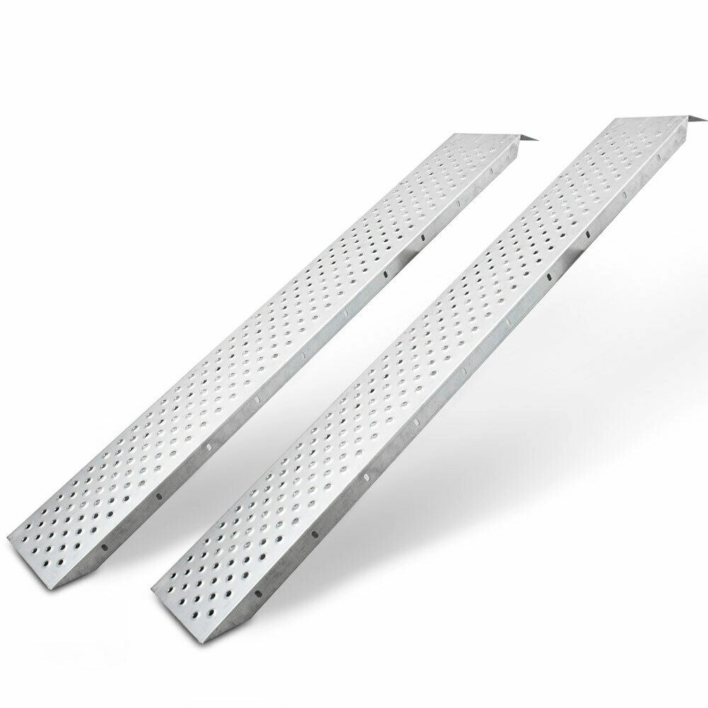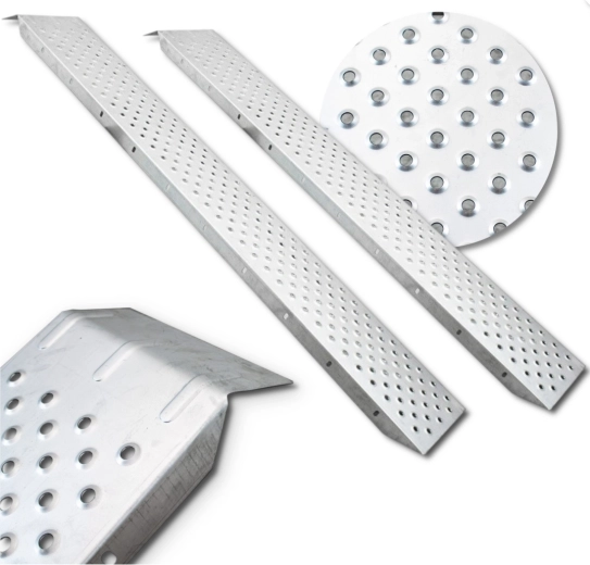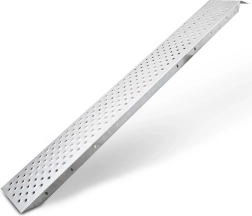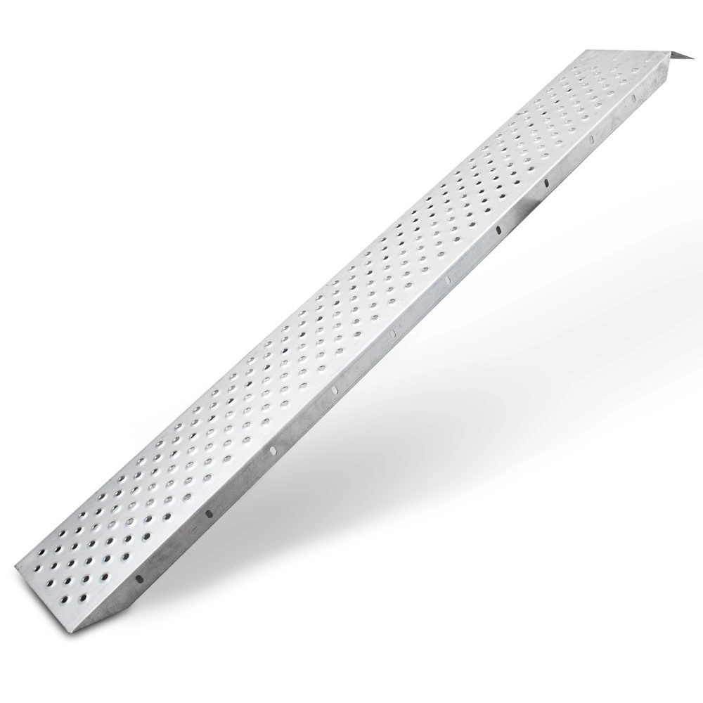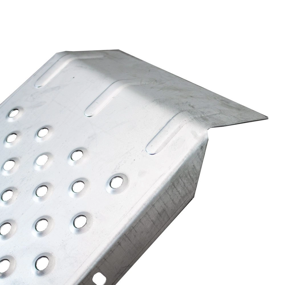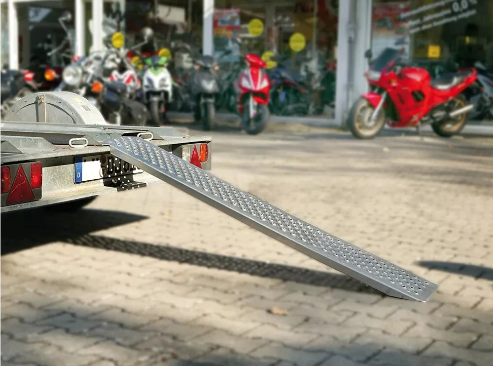Αυτές οι ατσάλινες ράμπες έχουν σχεδιαστεί για αξιόπιστη και ασφαλή άνοδο μοτοσικλετών, κηπουρικού εξοπλισμού ή εργαστηριακών μηχανημάτων σε οχήματα και πλατφόρμες. Η προφιλαρισμένη, διάτρητη επιφάνεια εξασφαλίζει εξαιρετική πρόσφυση και απομάκρυνση ρύπων, ενώ το σταθερό γαντζωτό στήριγμα επιτρέπει γρήγορη και σίγουρη τοποθέτηση στο χείλος της επιφάνειας φόρτωσης.