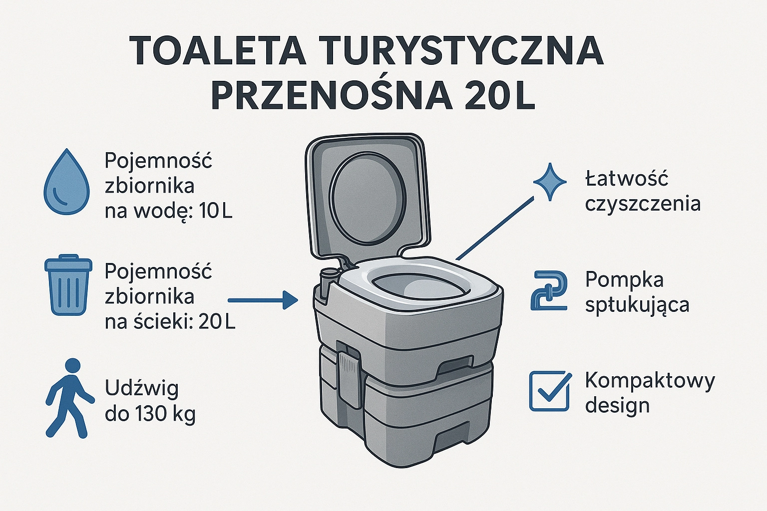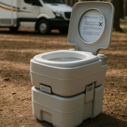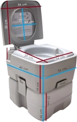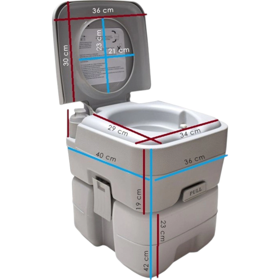 Απολαύστε την ελευθερία του ταξιδιού χωρίς συμβιβασμούς. Η φορητή τουαλέτα με 10 L καθαρού νερού και 20 L δοχείο αποβλήτων προσφέρει την άνεση μιας οικιακής τουαλέτας ακόμη και εκεί όπου δεν υπάρχει υποδομή. Το σταθερό διμερές σύστημα ενώνεται με πλευρικές πόρπες, είναι στεγανό και εύκολα μεταφερόμενο. Ιδανικό για κάμπινγκ, τροχόσπιτο, σκάφος, κήπο, εργοτάξιο ή εξοχικό.