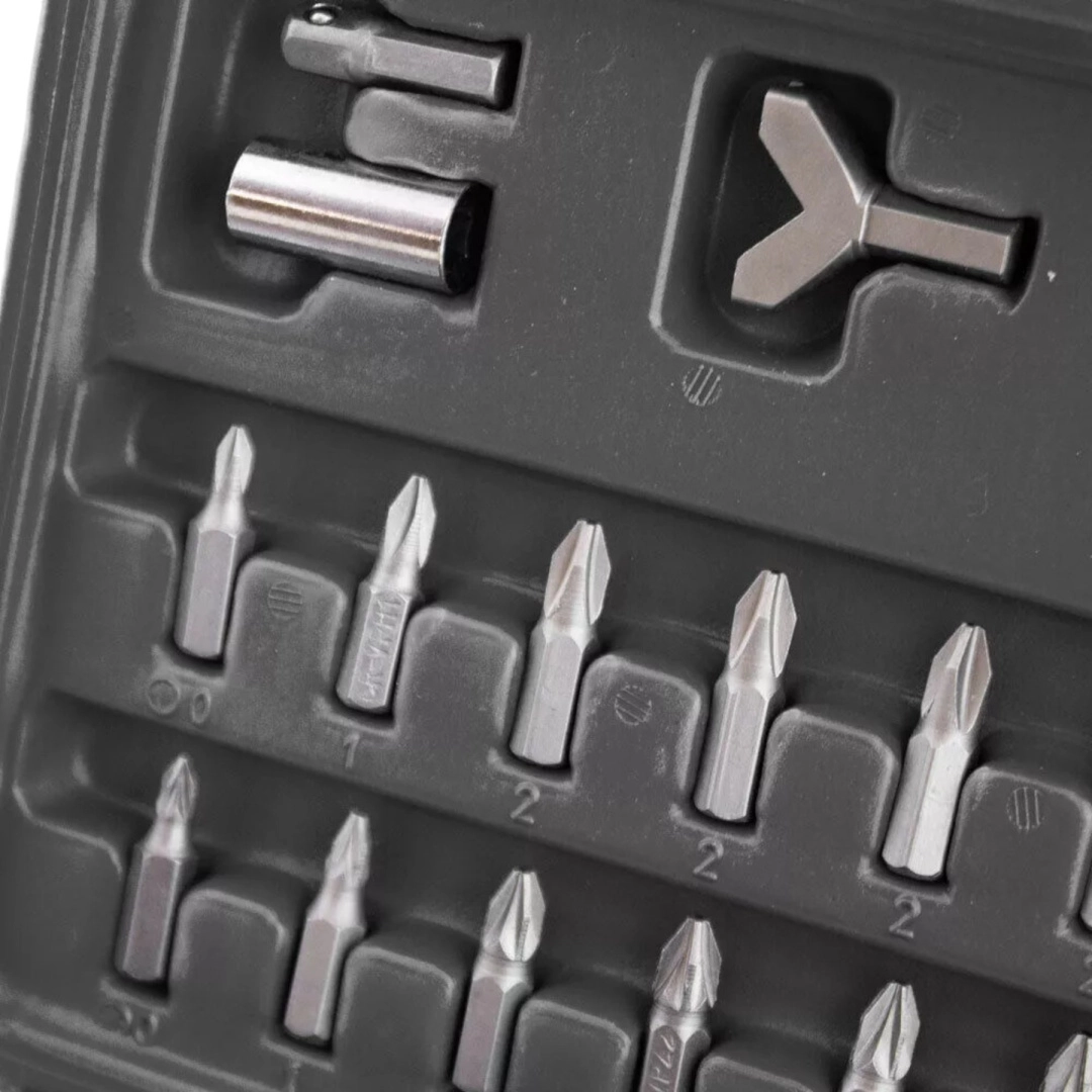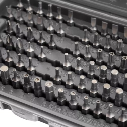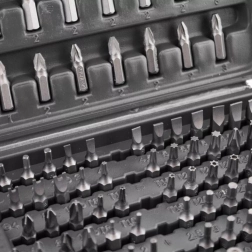 Η στιβαρή πλαστική θήκη κρατά κάθε μπιτ στη θέση του, ώστε να έχετε πάντα τάξη και γρήγορη πρόσβαση. Χάρη στις συμπαγείς διαστάσεις, το σετ είναι ιδανικό για το εργαστήριο, το αυτοκίνητο και τα ταξίδια.