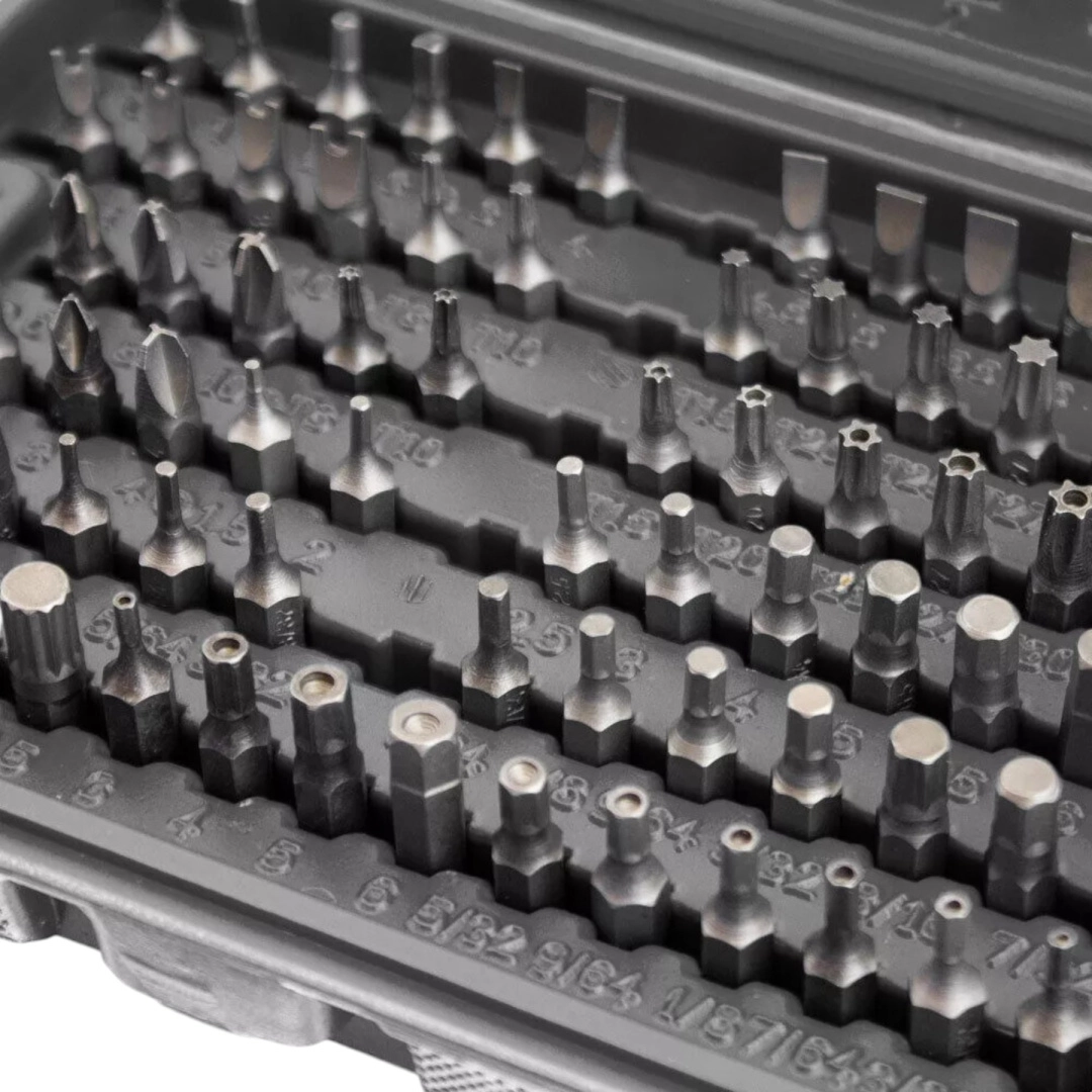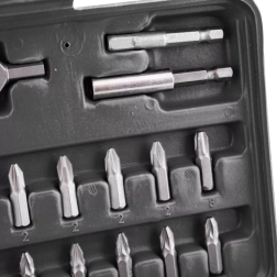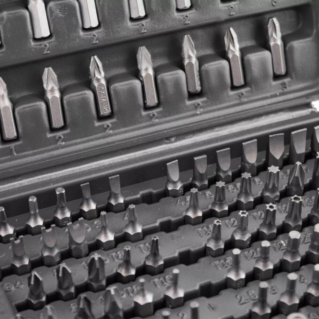Αυτό το ολοκληρωμένο σετ προσφέρει ευρεία γκάμα μυτών – ίσιες, σταυρού PH και PZ, TORX και TORX με οπή, μετρικά και ιντσών imbus (Allen), αντικλεπτικές μύτες τύπου tri‑wing, spanner, Robertson (SQ), XZN και άλλα. Το ανθεκτικό ατσάλι εξασφαλίζει μεγάλη διάρκεια ζωής και αξιοπιστία σε συναρμολόγηση, service και επισκευές.